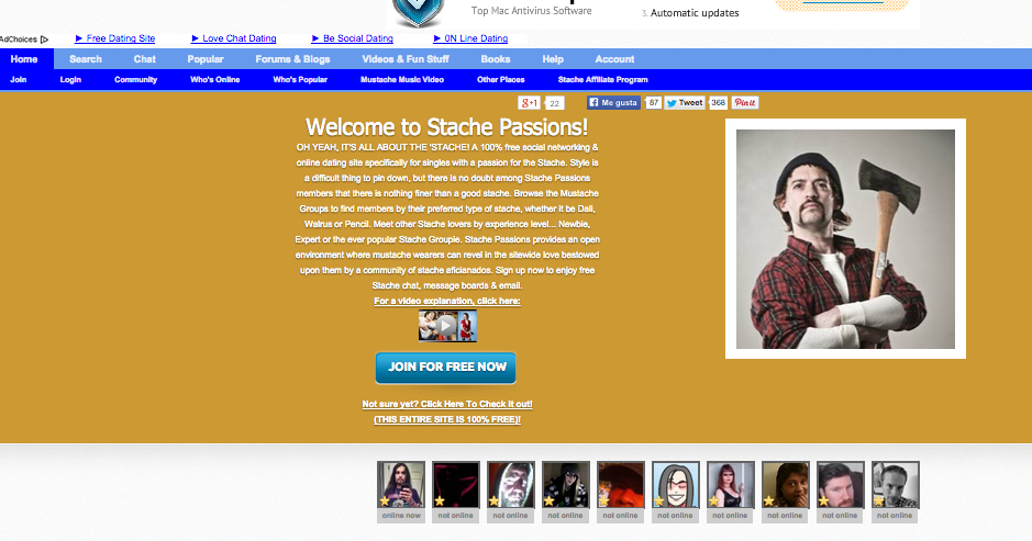 Otra red social vertical muy curiosa y un sitio de citas en el que lo más seguro y si eres hombre tengas que ir con bigote y es que los usuarios son apasionados de los bigotes. Es completamente gratuita y para solteros con pasión por esa estética. Además, incluye servicios como blogs blogs, consejos, foros o videos ofreciendo consejos sobre los bigotes.